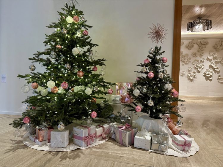 白を基調としたホテル内にクリスマスデコレーションがとても映えます。