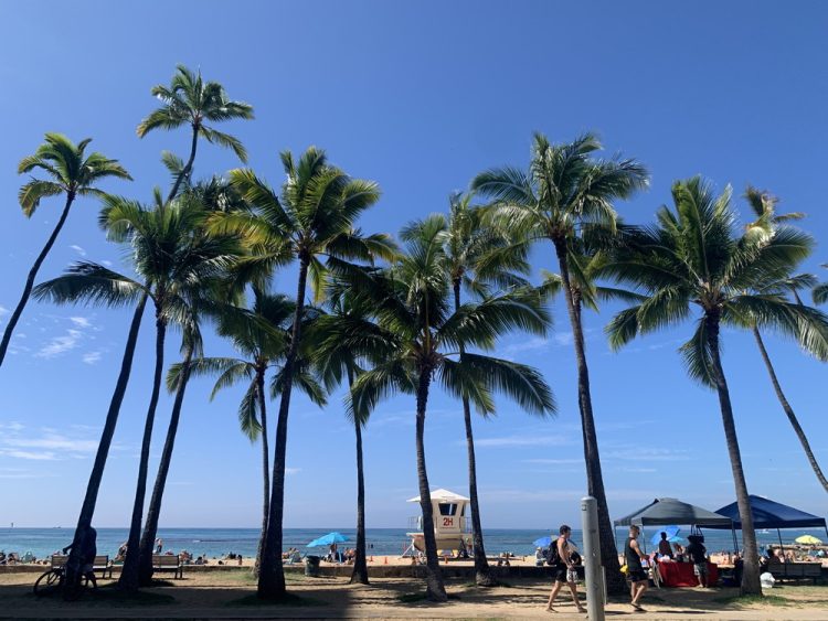 カイマナビーチは、ワイキキの東側に位置しダイアモンドヘッドを一望できるカピオラニ公園に隣接しています。